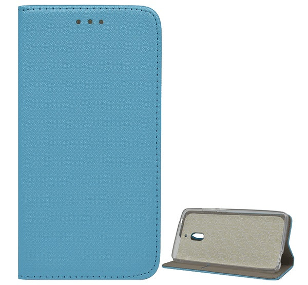Tok álló, bőr hatású (FLIP, oldalra nyíló, asztali tartó, rombusz) VILÁGOSKÉK