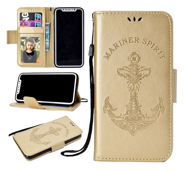 Tok álló, bőr hatású (FLIP, oldalra nyíló, asztali tartó, kézpánt, vasmacska) ARANY