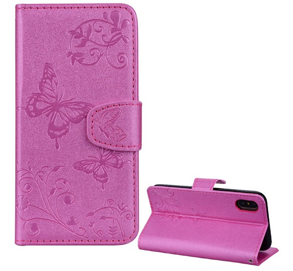 Tok álló, bőr hatású (FLIP, oldalra nyíló, asztali tartó, tükör, pillangó) RÓZSASZÍN