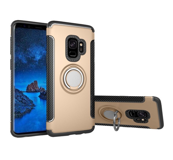 Szilikon telefonvédő (asztali tartó, tartógyűrű, mágneses, karbon minta) ARANY