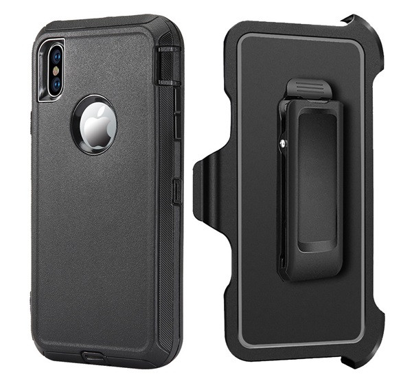 Defender szilikon telefonvédő (ütésállóság, asztali tartó, 360° védelem, logó kivágás) FEKETE