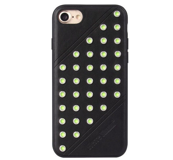 FIERRE SHANN műanyag telefonvédő (bőr hatású hátlap, szegecses) FEKETE
