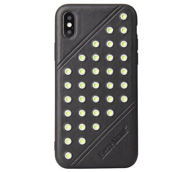 FIERRE SHANN műanyag telefonvédő (bőr hatású hátlap, szegecses) FEKETE