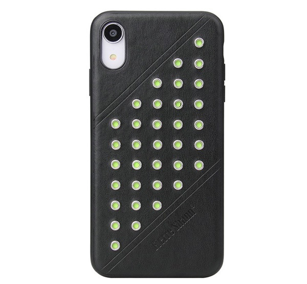 FIERRE SHANN műanyag telefonvédő (bőr hatású hátlap, szegecses) FEKETE