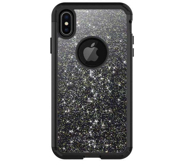 Defender szilikon telefonvédő (ütésállóság, flitteres, logó kivágás) FEKETE