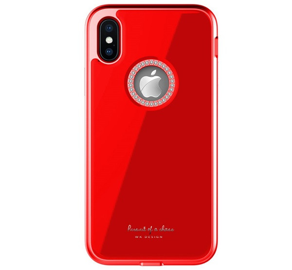 WK GINSTONE műanyag telefonvédő (ütésállóság, üveg hátlap, strasszkő, logó kivágás) PIROS