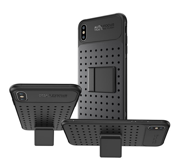 Szilikon telefonvédő (lyukacsos, levehető asztali tartó) FEKETE