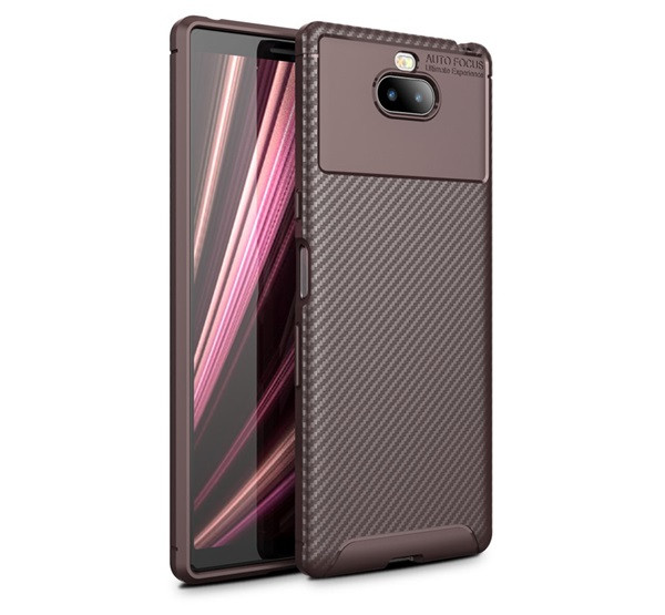 Szilikon telefonvédő (ütésállóság, légpárnás sarok, karbon minta) BARNA