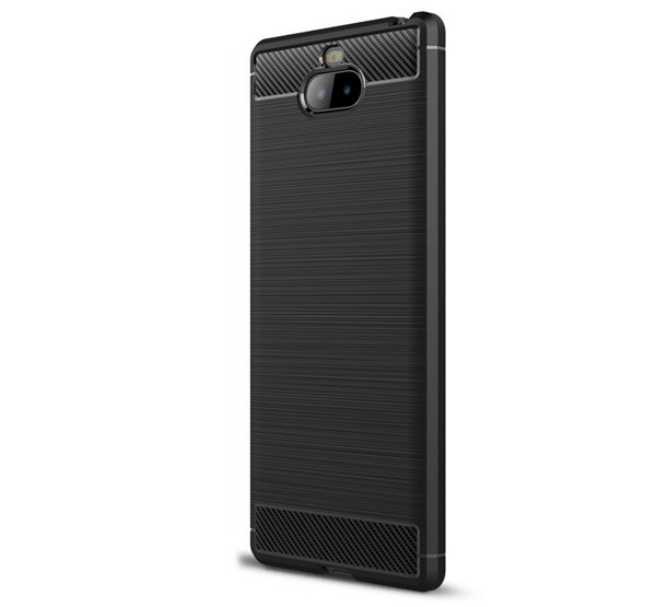 Szilikon telefonvédő (ütésállóság, légpárnás sarok, szálcsiszolt, karbon minta) FEKETE
