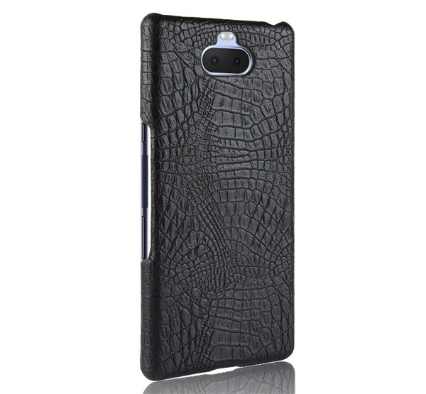 Műanyag telefonvédő (bőr hatású, krokodilbőr minta) FEKETE
