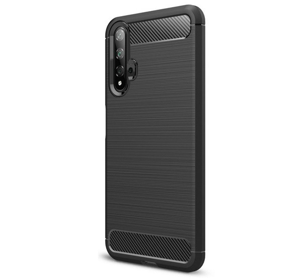 Szilikon telefonvédő (ütésállóság, légpárnás sarok, szálcsiszolt, karbon minta) FEKETE
