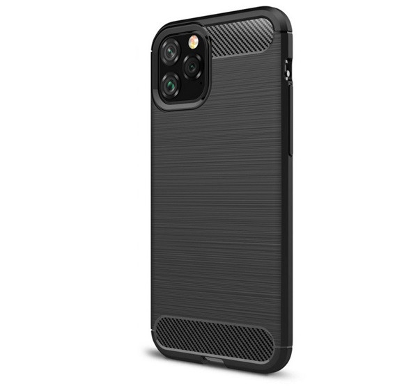 Szilikon telefonvédő (ütésállóság, légpárnás sarok, szálcsiszolt, karbon minta) FEKETE