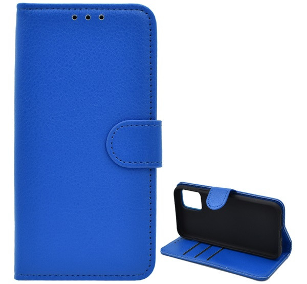 Tok álló, bőr hatású (FLIP, oldalra nyíló, asztali tartó, prémium) SÖTÉTKÉK
