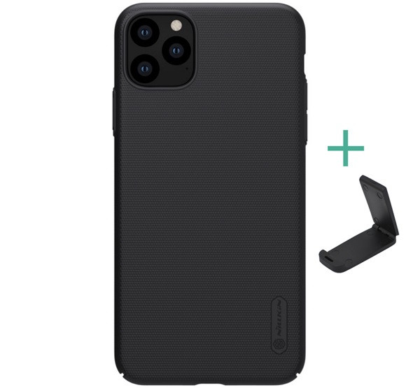NILLKIN SUPER FROSTED műanyag telefonvédő (gumírozott, érdes felület + asztali tartó) FEKETE