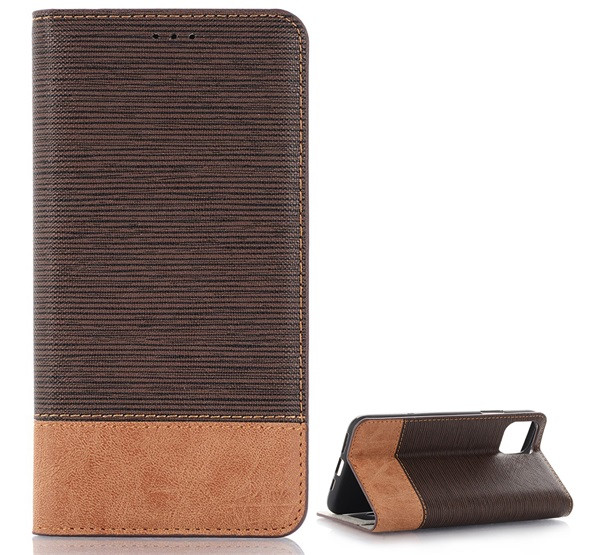 Tok álló, bőr hatású (FLIP, oldalra nyíló, asztali tartó, textil hatás) SÖTÉTBARNA