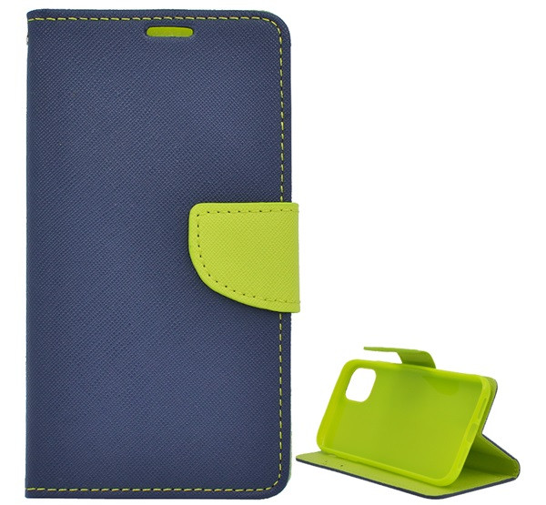 Tok álló, bőr hatású (FLIP, oldalra nyíló, asztali tartó, textil hatás) SÖTÉTKÉK/ZÖLD
