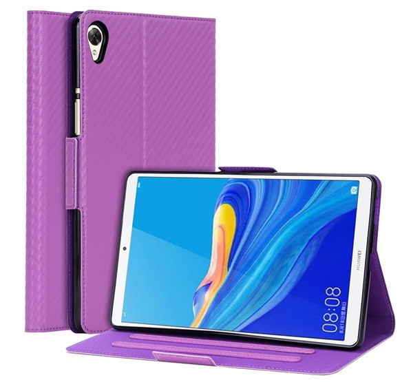 Tok álló, bőr hatású (FLIP, oldalra nyíló, asztali tartó, karbon minta) LILA