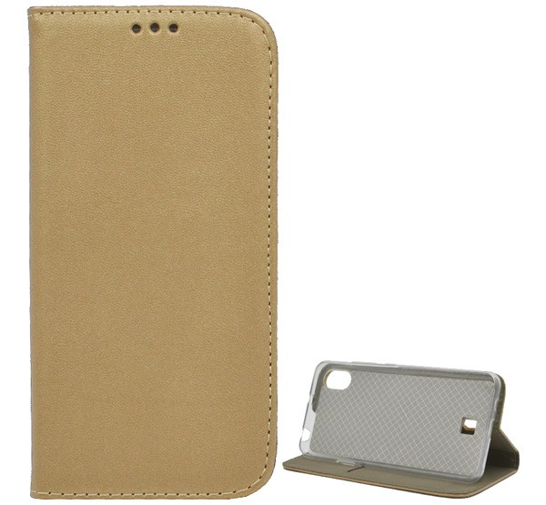 Tok álló, bőr hatású (FLIP, oldalra nyíló, asztali tartó) ARANY