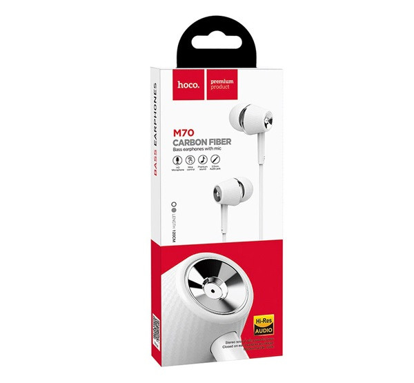 HOCO M70 fülhallgató SZTEREO (3.5mm jack, mikrofon, felvevő gomb) FEHÉR