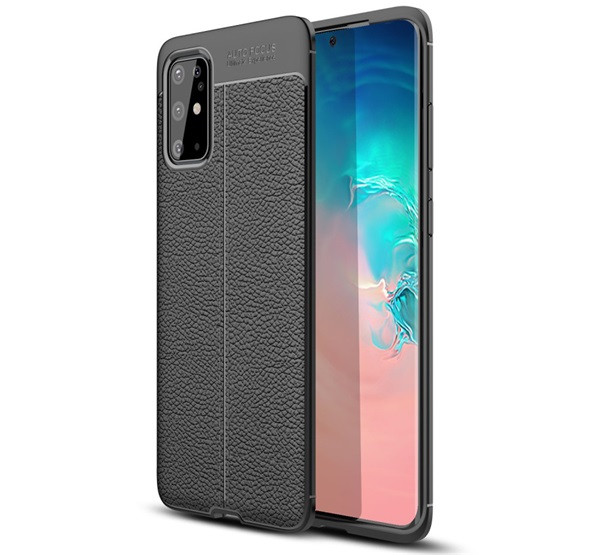 Szilikon telefonvédő (ütésállóság, bőr hatású, varrás minta) FEKETE