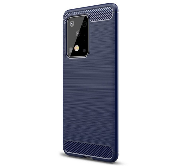 Szilikon telefonvédő (ütésállóság, légpárnás sarok, szálcsiszolt, karbon minta) SÖTÉTKÉK
