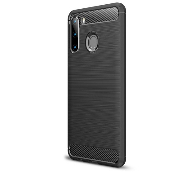 Szilikon telefonvédő (ütésállóság, légpárnás sarok, szálcsiszolt, karbon minta) FEKETE
