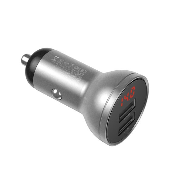 BASEUS autós töltő 2 USB aljzat (24W, gyorstöltő, LED kijelző) EZÜST