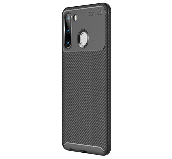 Szilikon telefonvédő (ütésállóság, légpárnás sarok, karbon minta) FEKETE