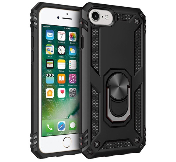 Defender szilikon telefonvédő (ütésállóság, tartógyűrű, mágneses) FEKETE