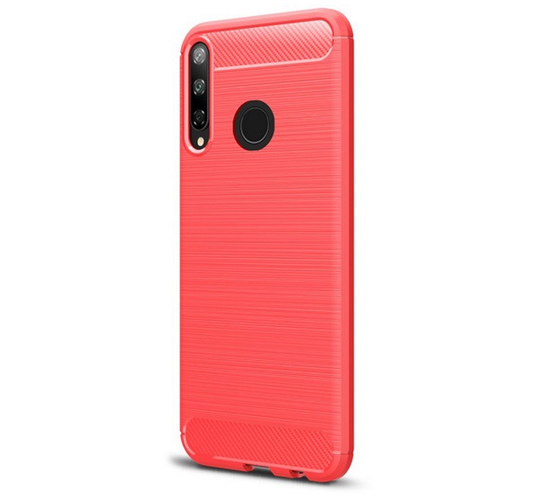 Szilikon telefonvédő (ütésállóság, légpárnás sarok, szálcsiszolt, karbon minta) PIROS