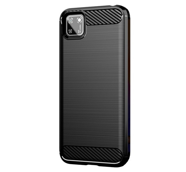 Szilikon telefonvédő (ütésállóság, légpárnás sarok, szálcsiszolt, karbon minta) FEKETE