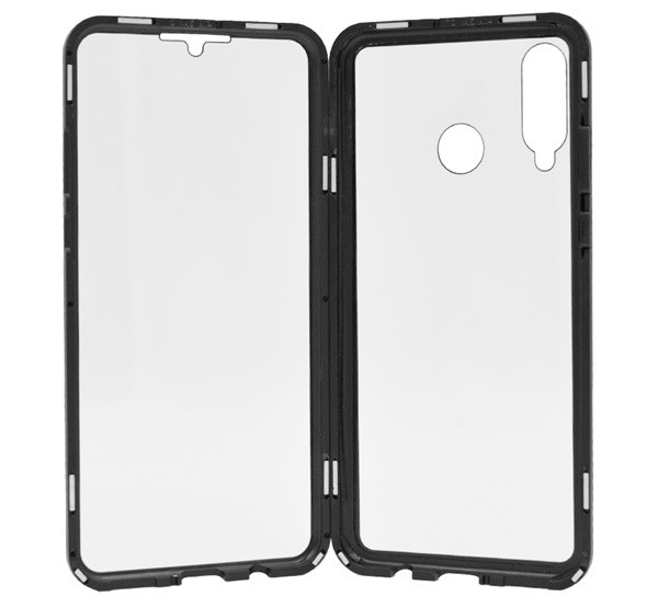 Alumínium telefonvédő (360°-os védelem, mágneses, ütésállóság, üveg előlap + hátlap, 9H) FEKETE