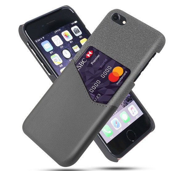 Műanyag telefonvédő (ütésállóság, kártyazseb, textil bevonat, bőr hatású hátlap) SÖTÉTSZÜRKE