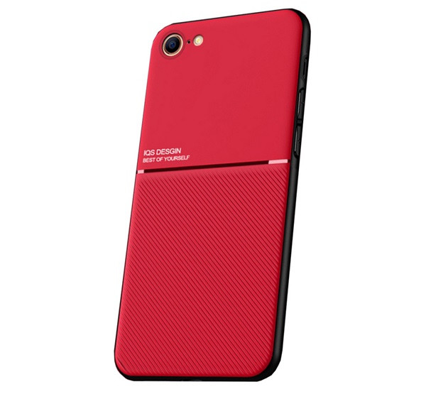 Szilikon telefonvédő (ütésállóság, mágneses, bőr hatású hátlap, csíkos) PIROS