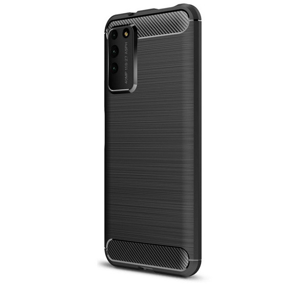 Szilikon telefonvédő (ütésállóság, légpárnás sarok, szálcsiszolt, karbon minta) FEKETE