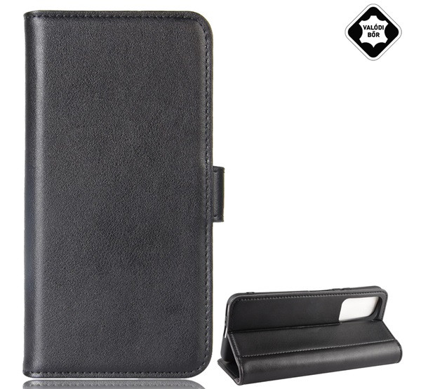 Tok álló, valódi bőr (FLIP, oldalra nyíló, asztali tartó) FEKETE