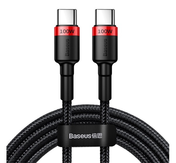 BASEUS CAFULE adatkábel (Type-C - Type-C, 100W, PD gyorstöltő 3.0, cipőfűző, 200cm) PIROS